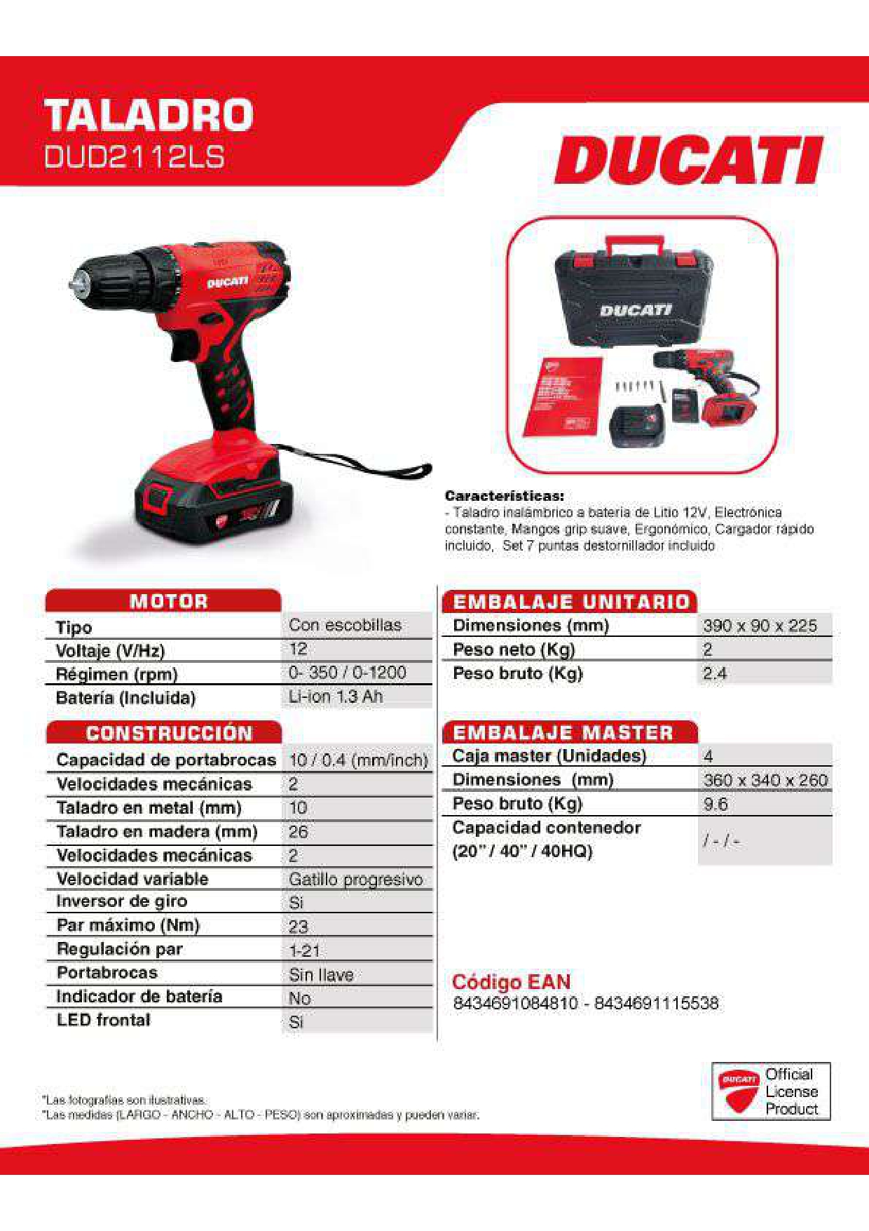- Capacidad de portabrocas: 10 / 0.4 (mm/inch)